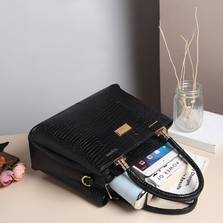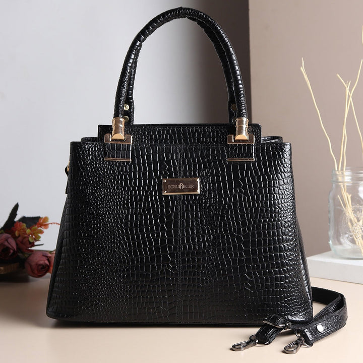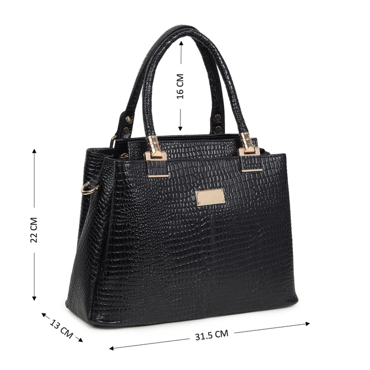 Experience luxury with Isabella Satchel handheld bag featuring a striking crocodile texture that adds a touch of sophistication to any outfit. With sturdy top handles and a spacious interior, it effortlessly combines style with functionality.
