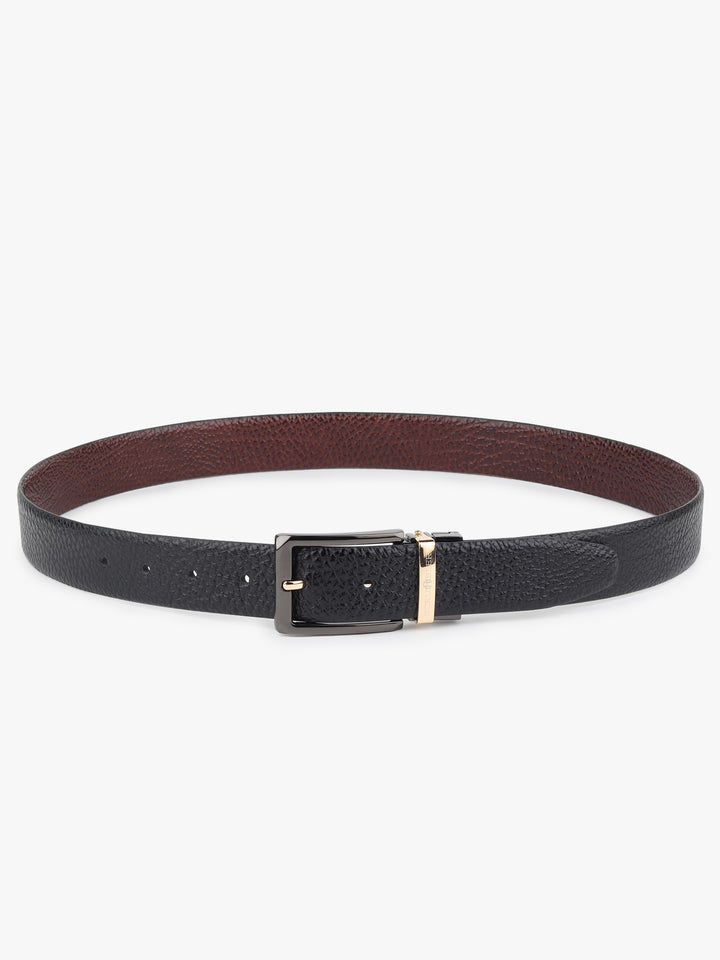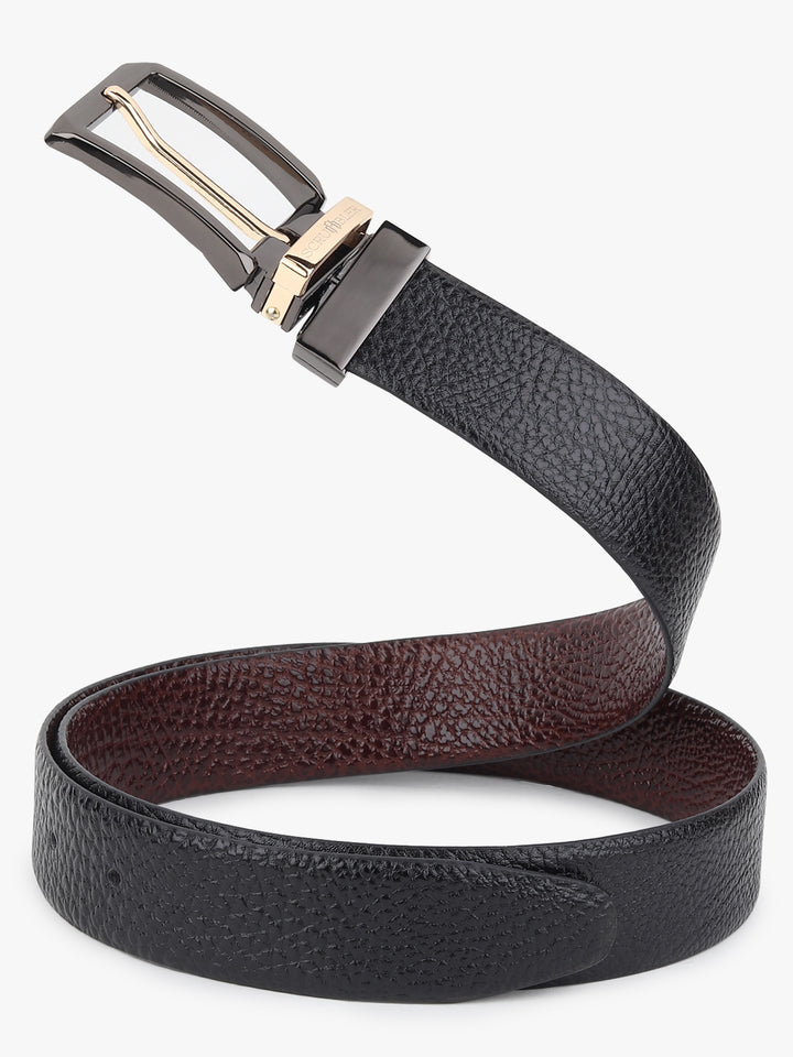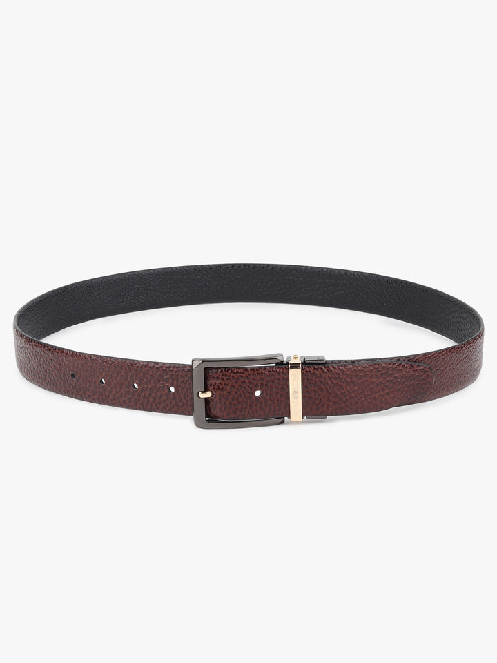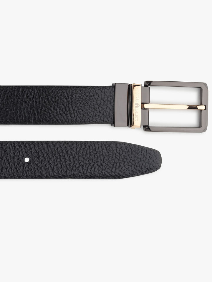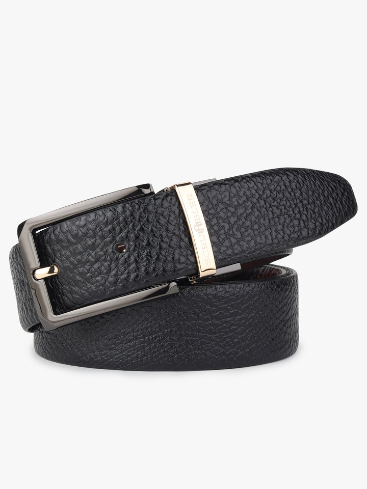 Scrumbler Rock Grain Textured Reversible Leather Belt, made from top grain leather with a a bold, naturally inspired pattern that resembles the rugged surface of finely pebbled stone, offering two looks in one. Featuring a sleek Dual Tone zinc alloy buckle, this belt transitions effortlessly from black to brown — without compromising on style or durability.